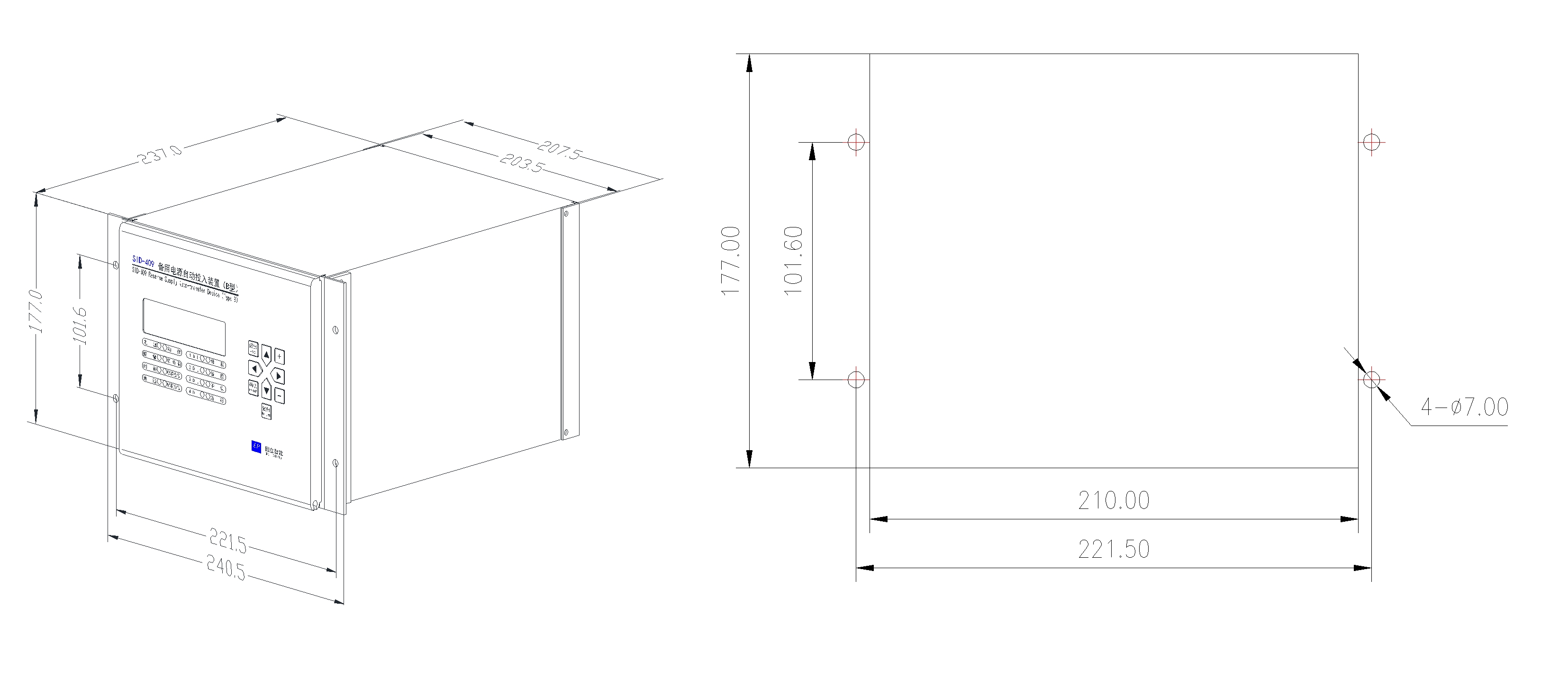 SID‑409B is a highly integrated automatic transfer controller for backup power systems, supporting up to 9 standard switching schemes and 4 breaker combinations, making it suitable for a wide range of power transfer scenarios.